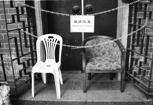 What sort of obstruction is being prohibited? Are the owners of those chairs obstructing access to the door prohibiting obstructions to the chairs? Isn’t the sign itself obstructing access to those chairs?