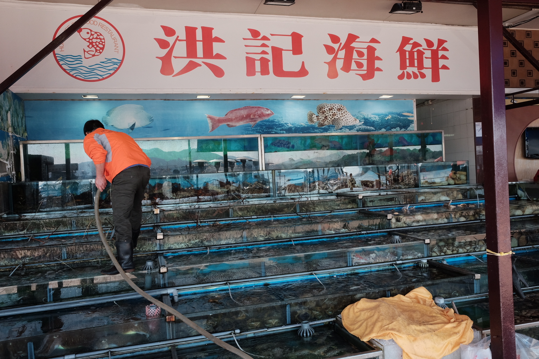 Outside a seafood restaurant – the obligatory scene to take at Sai Kung.